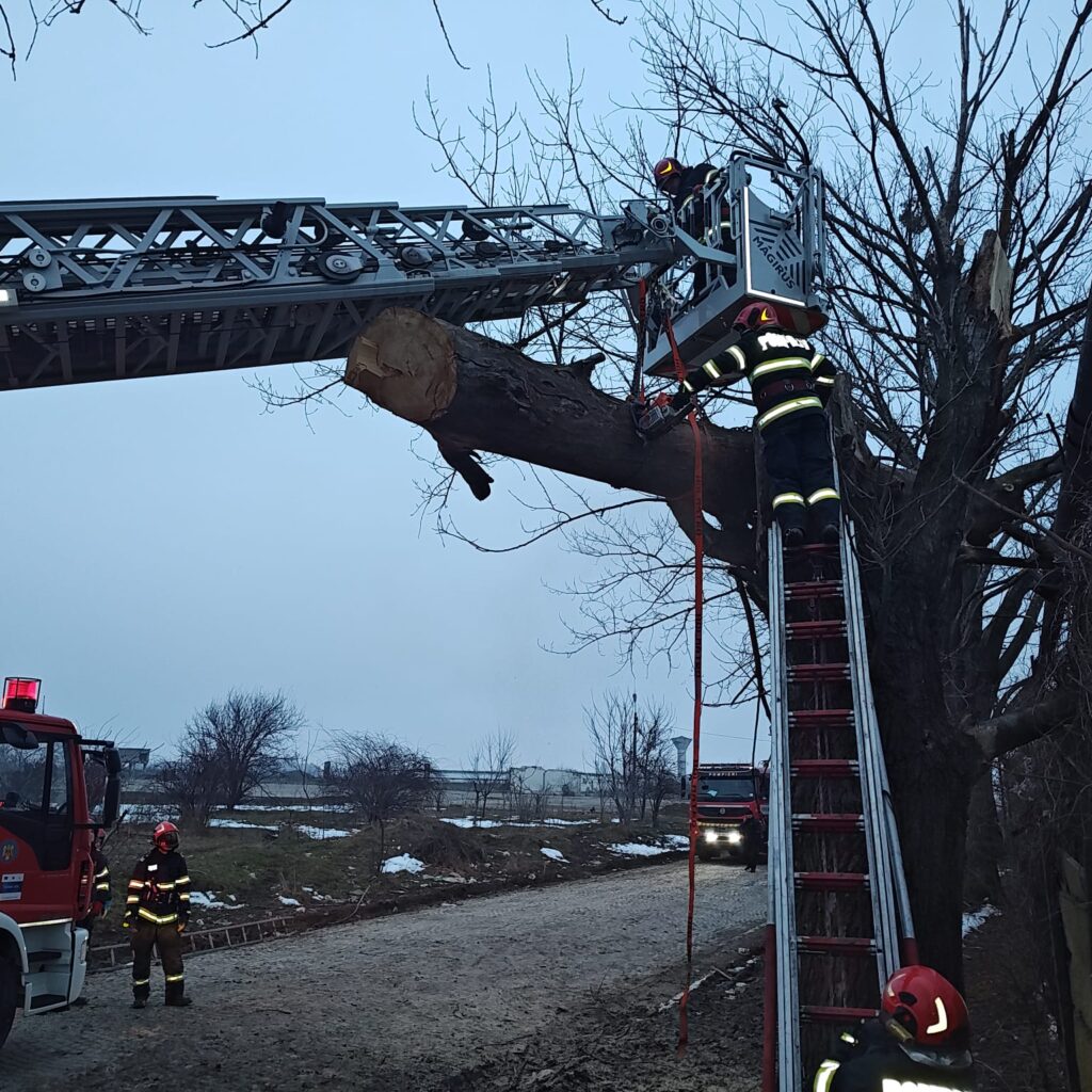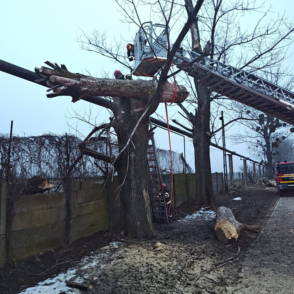Situația a fost agravată de faptul că arborele căzuse direct peste o țeavă de gaz.